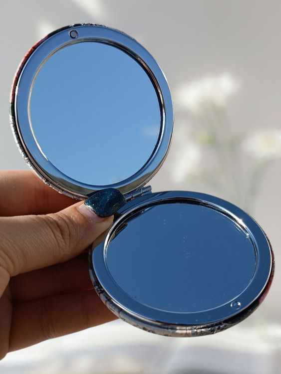 آینه جیبی فانتزی با نمای بزرگ و کوچک و نگین دار