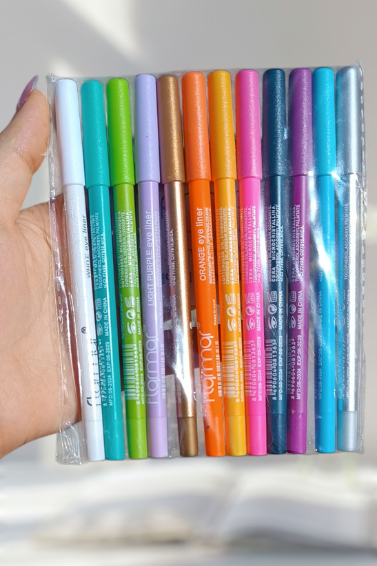 اگه دنبال یه پک رنگی شاد و حرفهای برای چشمهات هستی، این پک دقیقاً همون چیزیه که میخوای! ۱۲ عدد مداد چشم و خط چشم شمعی با رنگهای شاد و خاص، بسیار نرم، روان و بدون نیاز به فشار کشیدن.