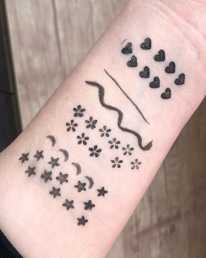 با نوک ماژیکی یک خط دقیق روی پلک بکشید. برای زیبایی بیشتر، از سمت استامپی در انتهای چشم یا کنار پلک طرح قلب یا گل بزنید.