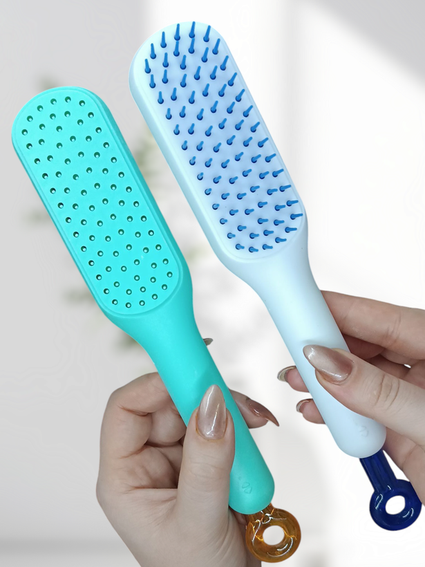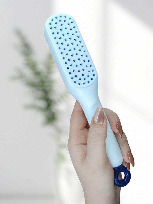 • اهرم جادویی: یه اهرم زیر برس هست که با فشار دادن، دندونهها داخل میرن و موهای جمع شده به راحتی جدا میشن. تمیز کردن کف برس هم مثل آب خوردنه!