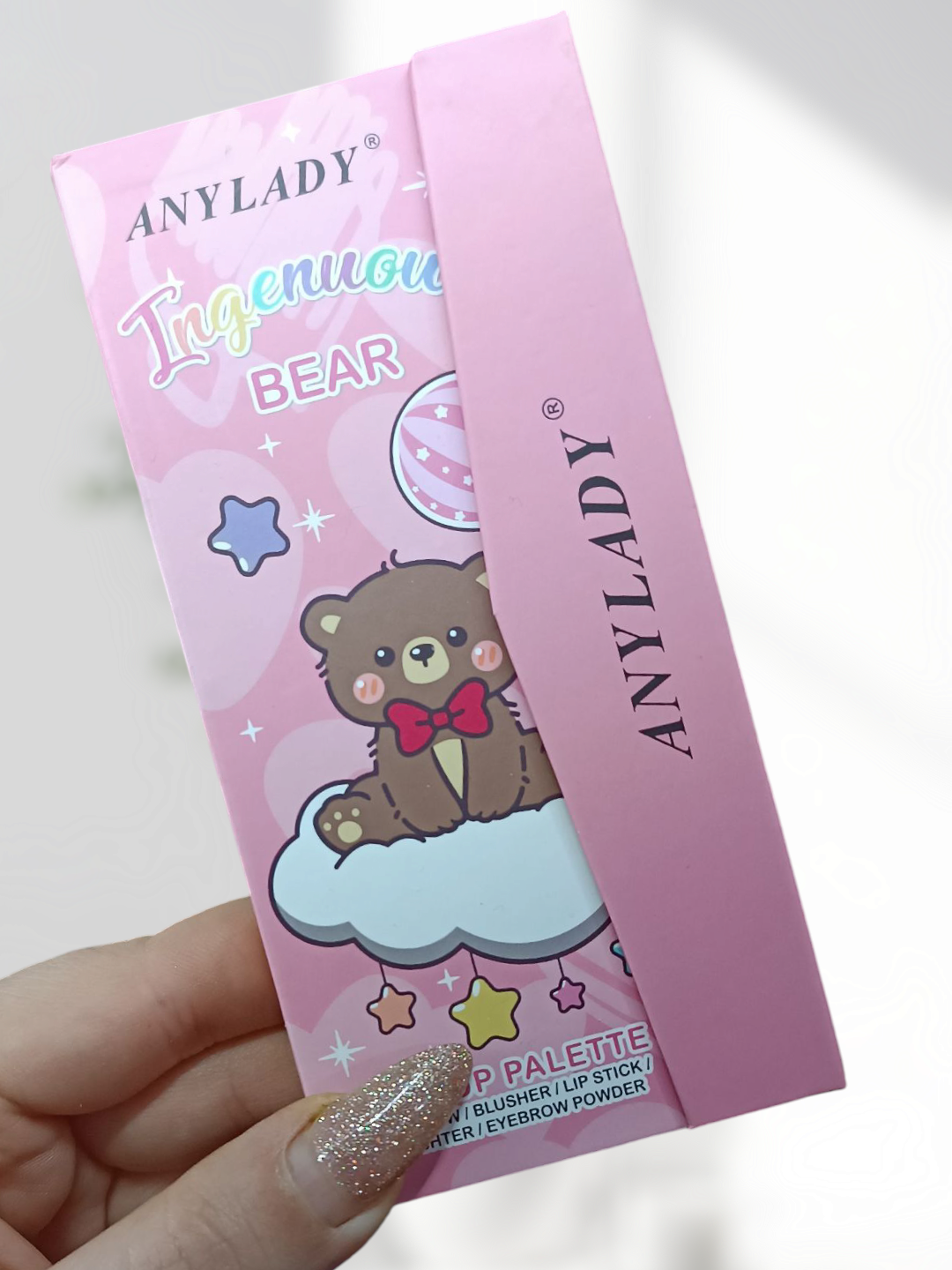 سایه کیفی آنی لیدی طرح خرس پالت 18 رنگ نود، مات و شاین + رژگونه + هایلایتر + رژلب