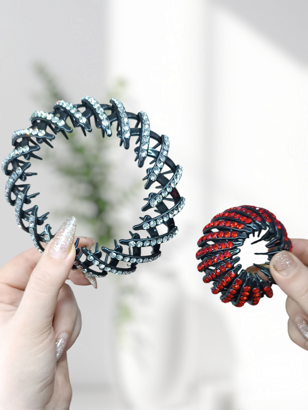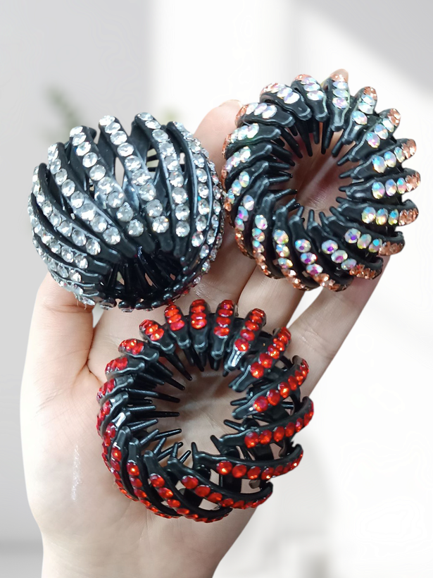 این کلیپسها نگینکاری شده و ظاهر خیلی شیک و مرتب به موها میده. مدلشون چنگکیه و قابلیت باز و بسته شدن کامل دارن، پس روی هر نوع مویی خوب میایسن. نه لیز میخورن و نه وسط مهمونی ول میکنن!